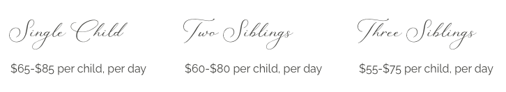 Find the sliding scale that applies to your family (single child, two sibling or three sibling) and select a rate within that range to pay per child, per day.